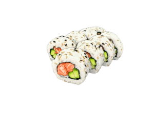 California Inside Out Roll mit Lachs, Avocado und Frischkäse